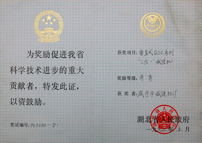 :Third prize of science and technology progress award of QS series reducer Indust